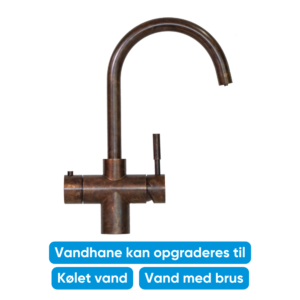 Køkkenet er hjemmets vigtigste rum. Det er her vi laver mad, får dagens forfriskninger, og samles med familie og venner. Derfor er det også vigtigt, at køkkenet er udstyret med det rigtige armatur, der både er praktisk og flot at se på. Og det er vores flotte kobber vandhane, der giver Deres køkken et unikt udtryk. Samtidig gør vores vandhane i kobber Deres hverdag både sjovere og lettere, da vores sortiment kan levere både kogende vand, isvand og danskvand direkte fra hanen.
